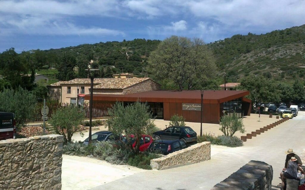 Cette aire est traitée comme une oliveraie en restanques, référence directe à l’environnement agricole de la commune, les arbres étant accompagnés de plantes tapissantes aromatique permettant de recouper visuellement le stationnement.